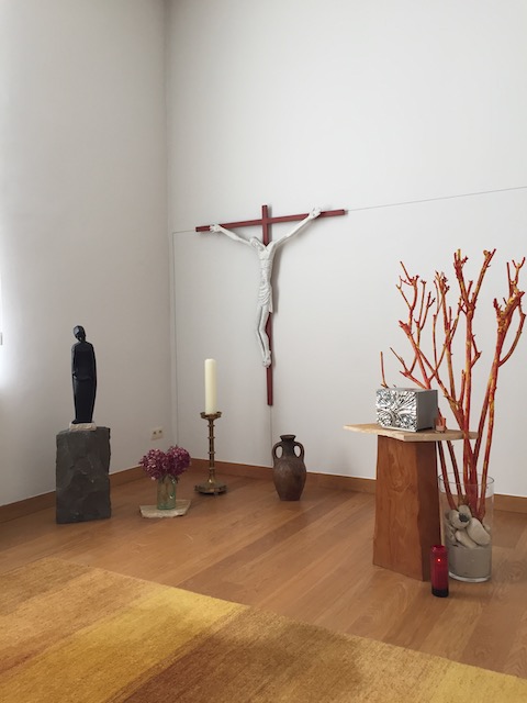 Vaak zat ik met mijn tekst van de dag in de intieme kapel met de naam Brandend braambos: een verwijzing naar het verhaal in Exodus, waarin God zich openbaart aan Mozes als stem in een brandende doornstruik. Ook voor mijn laatste persoonlijke gebedsmoment ging ik naar die kapel. Ik was in de loop van mijn retraite mijn focus op het lijden van Christus inmiddels voorbij. Een lijden dat door de uiterst realistische crucifix sterk werd geaccentueerd. Op mijn vaste plekje voorin zat een andere deelneemster, een zuster in habijt. Met voldoende afstand tussen ons in ging ik naast haar zitten, mijn blik naar voren richting het tabernakel. Verrast zag ik, dat zij het tabernakel had geopend zodat het Lichaam van Christus in de gedaante van de hostie zichtbaar was. Zij zat in aanbidding, zoals dat heet. En daar gebeurde het.